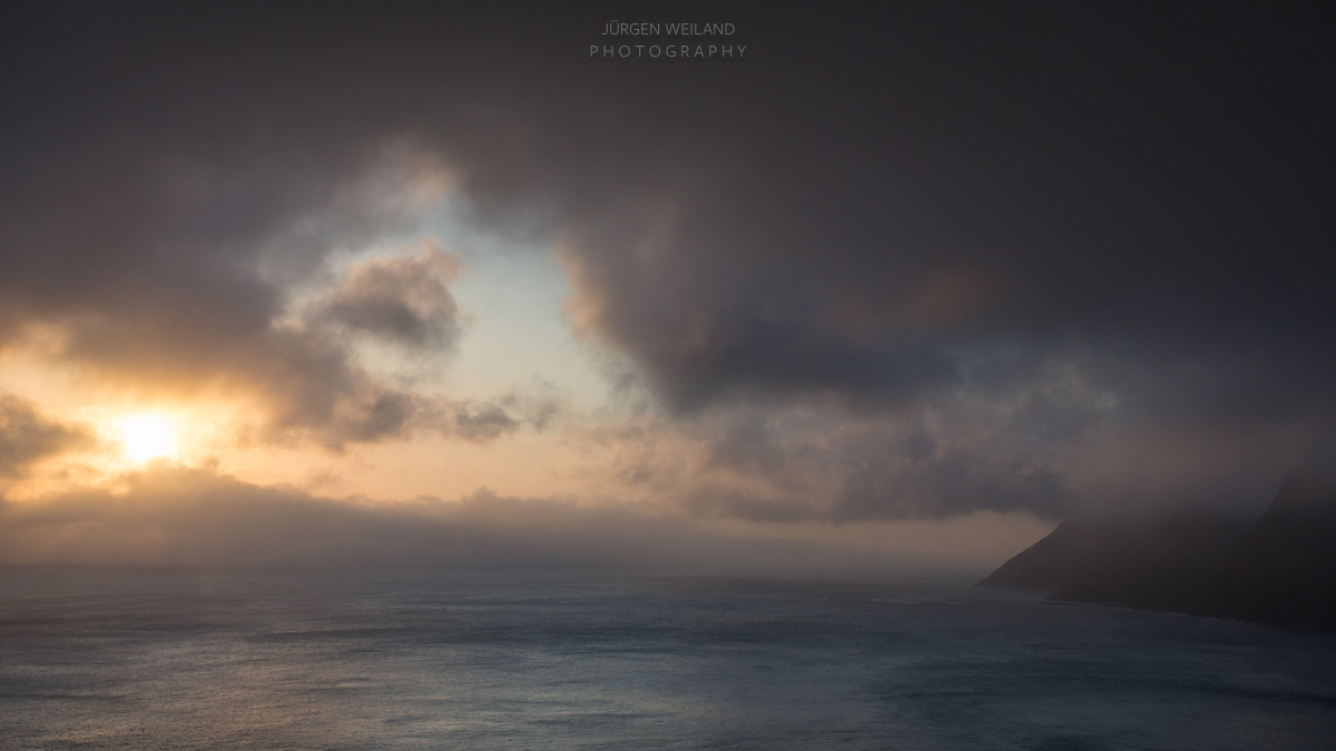 Orange clouds covering Table mountain